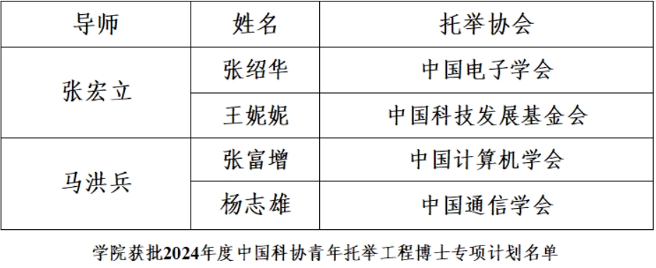 喜报 | 公司张宏立教授课题组张绍华和王妮妮、马洪兵教授课题组杨志雄和张富增四名博士获批2024年度中国科协青年托举工程博士专项计划